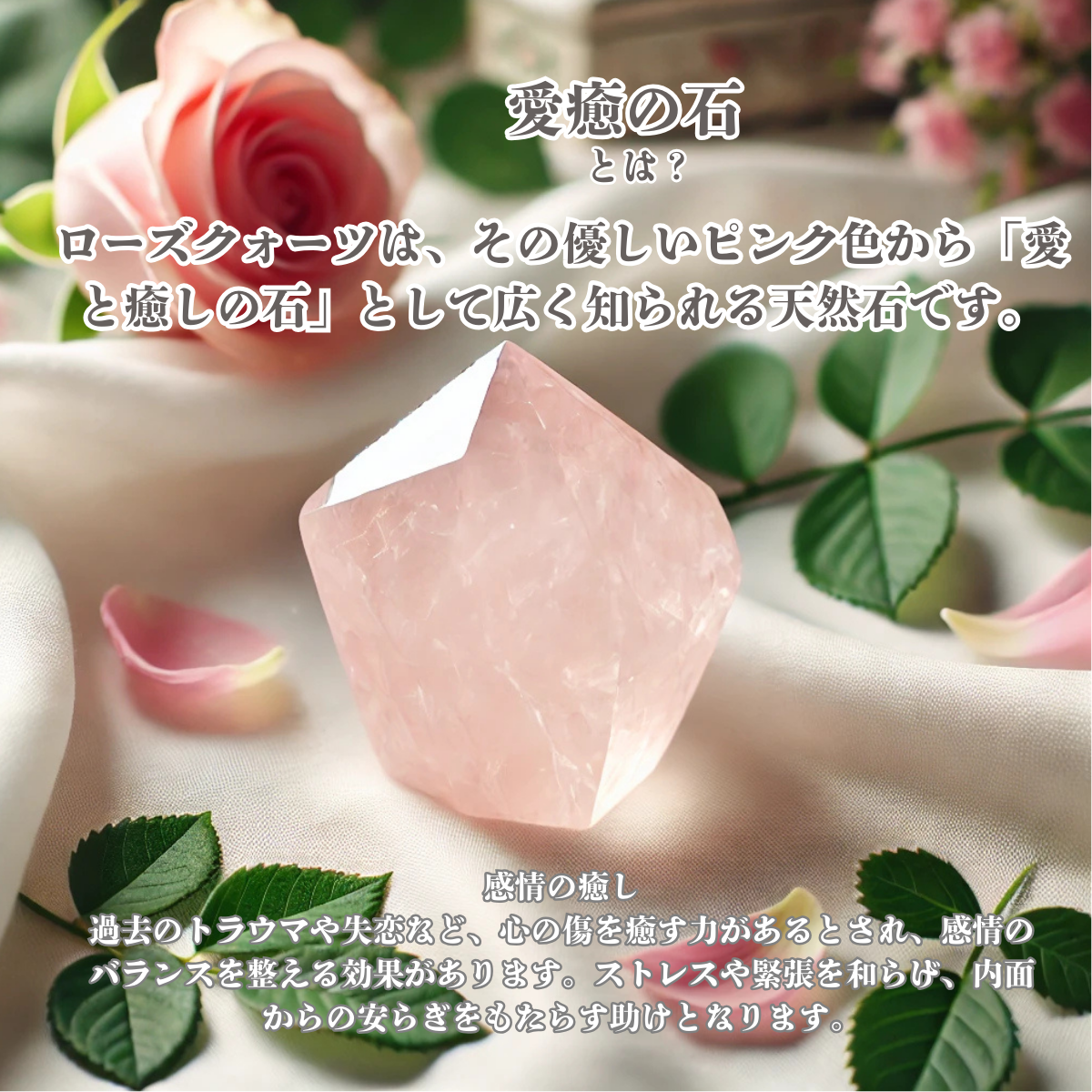 ローズクオーツは「愛と癒しの石」として広く知られ、優しいピンク色が持つ人の心を包み込み、安心感と安らぎを与えてくれる天然石です。