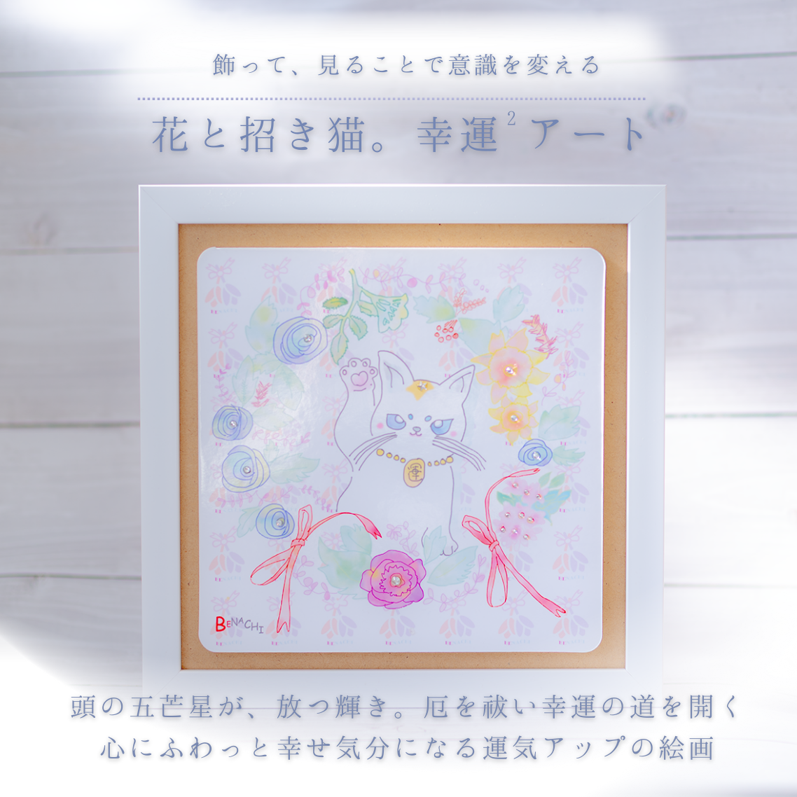 びなっちオリジナルの「花と招き猫」開運アート。